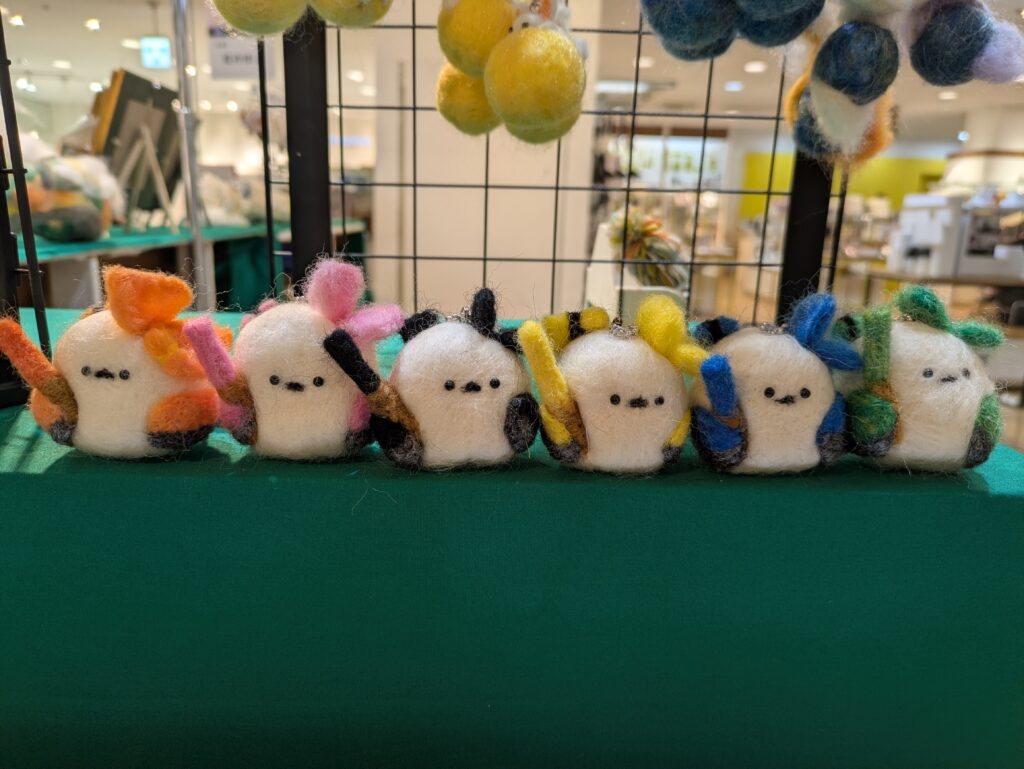 いつもいつも教室に通って、自分のものを編み編みしているお友達と、前回の郡山の物産展からコラボで出しているさこっしゅと、巾着もじわじわと売れて